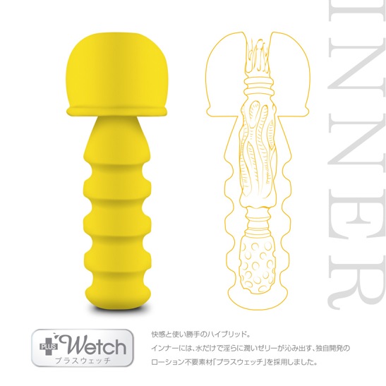 インナーには、水だけで淫らに潤いゼリーが沁み出す、独自開発のローション不要素材「プラスウェッチ」を採用。