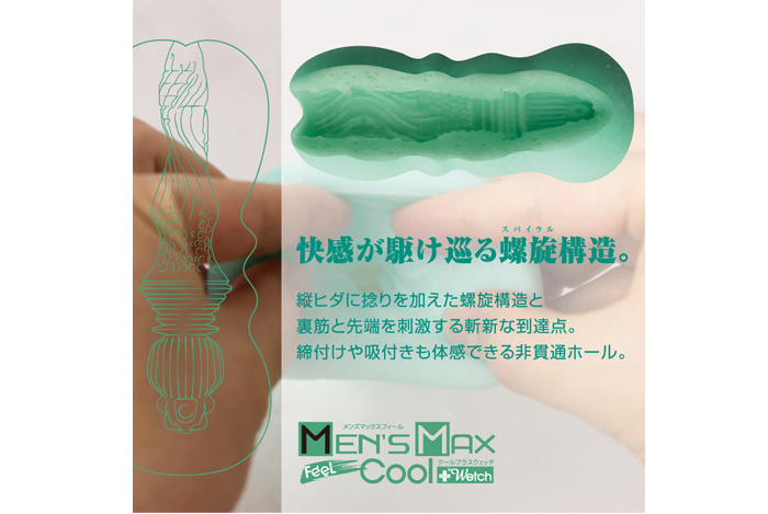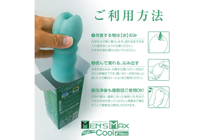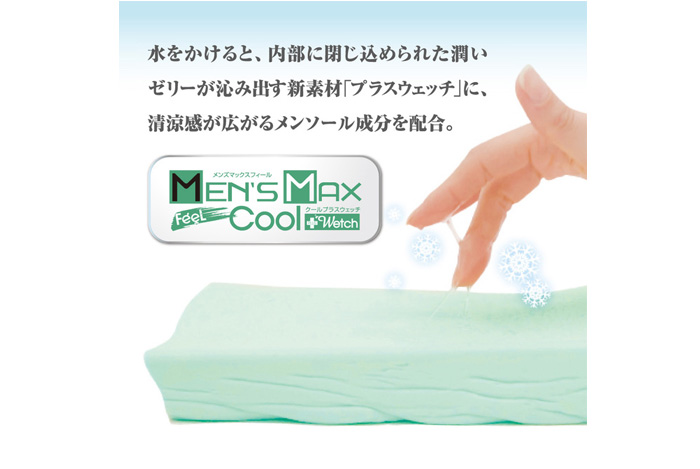 内部を水で軽く濡らしホールを揉んだり擦ることで、内壁から潤いゼリーが沁み出すローション不要素材「プラスウェッチ」に、メンソール成分を配合したクールバージョンが登場!!