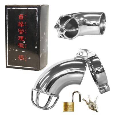 金属のパイプタイプの男性用貞操帯。勃起は無論不可能!
